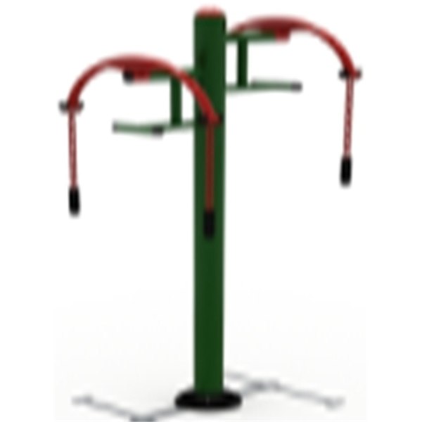 This equipment is designed to improve shoulder flexibility and mobility through controlled stretching movement in an easy-to-use outdoor fitness format.